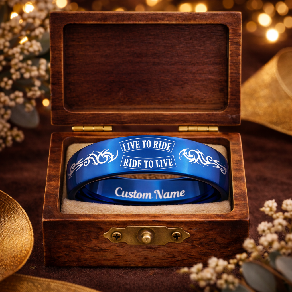 Crafted for riders who live life wide open—and for those who honor them—this Personalized HD Biker Ring Box Set is built to last a lifetime, just like the road ahead.